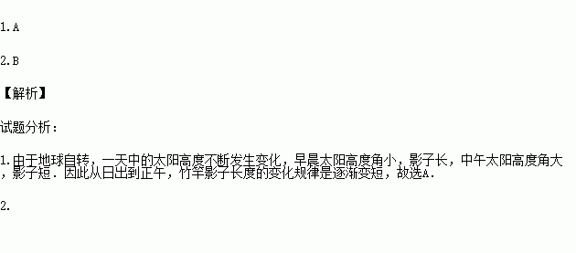 1.从日出到正午,竹竿影子长度的变化规律是