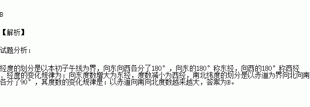 A.以180°经线为界,东经和西经的度数分别向东、向愈来愈大