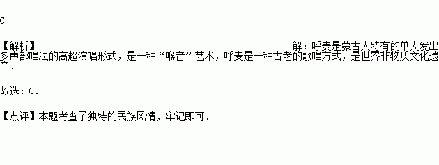 小雨班上有11名少数民族同学,有一位居然还会呼麦,他告诉小雨呼麦是他们的民族文化瑰宝,他是人.( )