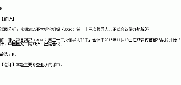 2015亚太经合组织(APEC)第二十三次领导人非正式会议11月18日在哪个城市举行?( )