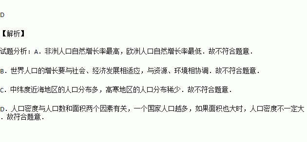 亮亮同学学习了”世界的人口”这一节后,对人口的增长、分布、人口问题、密度等方面作了如下归纳,其中错误的一项是( )