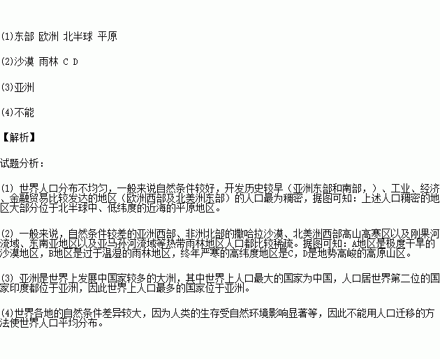 (4)ÓÉ´Ë¿´À´ÊÀ½çÈ˿ڷֲ¼ºÜ²»¾ùÔÈ£¬________(Ìî¡°ÄÜ¡±»ò¡°²»ÄÜ¡±)ÓÃÈË¿ÚÇ¨ÒÆµÄ°ì·¨Ê¹ÊÀ½ç¸÷µØµÄÈË¿ÚÆ½¾ù·Ö²¼¡£