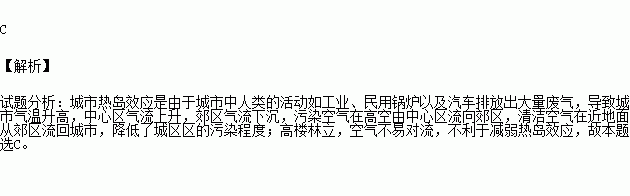 读“城市热岛效应示意图”,下列叙述正确的是( )