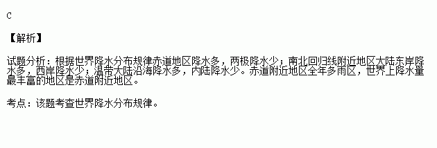 C.地中海沿岸夏季炎热干燥、冬季温和多雨