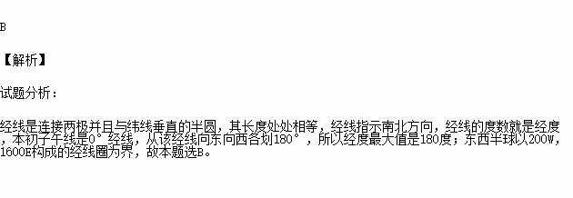 A.经度最大值是360度,东西半球分界线是200W,1600E经线