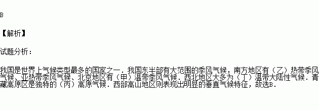 下图是我国四地气温降水量资料图,甲、乙、丙、丁位于不同地理分区,甲、乙、丙、丁分别位于( )