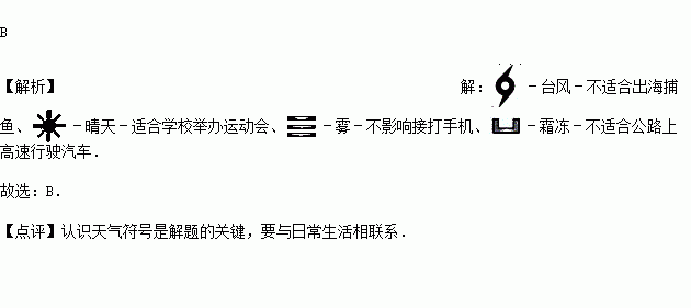 下列天气符号的判读与人们所进行的活动搭配均正确的是( )