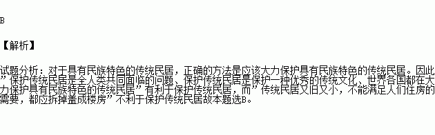 B、传统民居又旧又小,不能满足人们住房的需要,都应拆掉盖成楼房