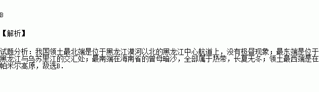 A.黑龙江省漠河县北端的黑龙江主航道中心线上