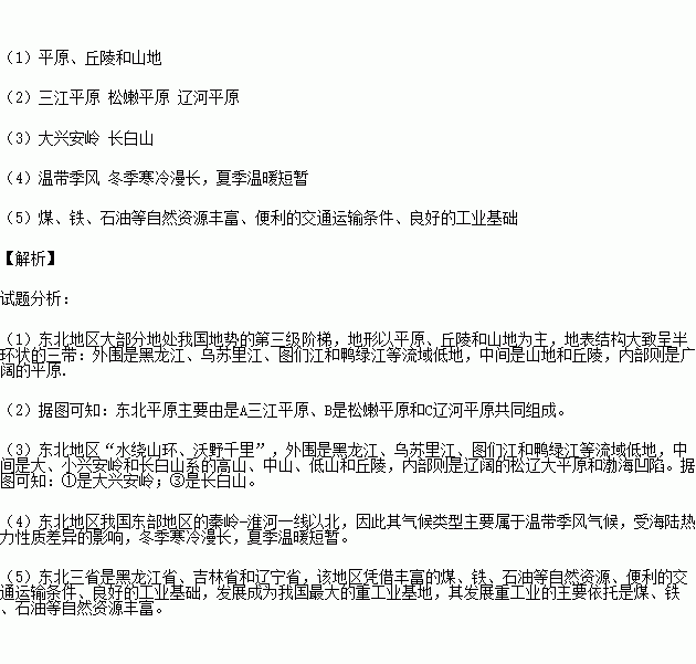 (2)图中字母ABC代表的东北平原三个组成部分,