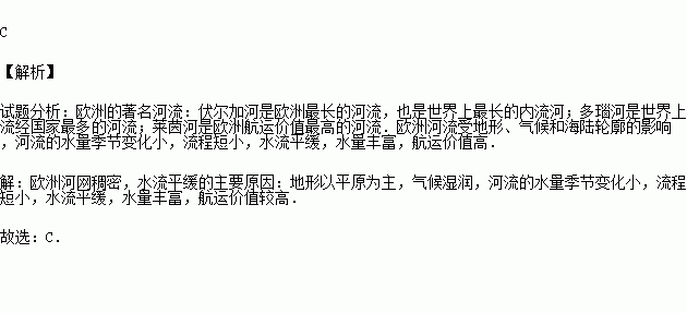 欧洲河网稠密,水流平缓的主要原因是( )