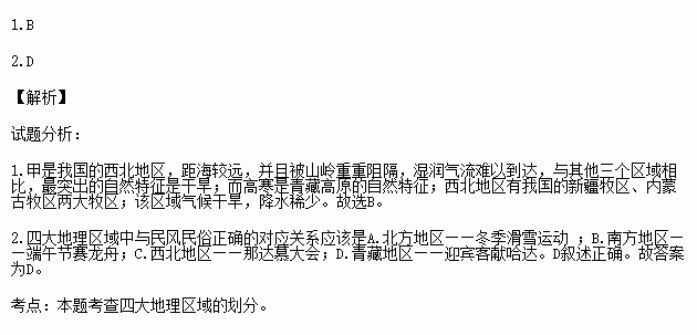2.四大地理区域中与民风民俗的对应关系,正确的一组是