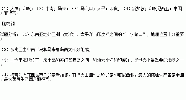 (1)东南亚地处亚洲与 洲,太平洋与 洋之间的“十字路口”,地理位置十分重要.