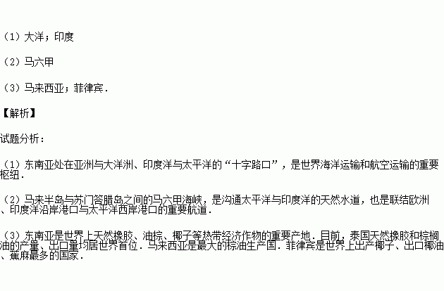 (1)东南亚地处亚州与____________州,太平洋与______洋之间的“十字路口”,地理位置十分重要.