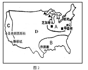 2 美国著名的硅谷位于ABCD中哪个地带 ( )