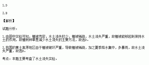 实验:同等雨量不同植被下的水土流失实验。据此完成下列问题。