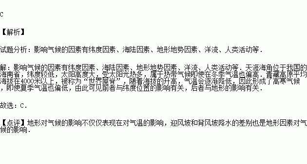 “天涯海角隆冬暖,青藏高原盛夏寒”,这两地气候特征的成因( )