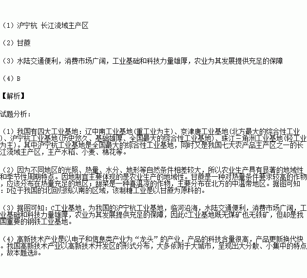 (3)C工业基地既无煤矿也无铁矿,但却是我国重要的钢铁工业基地,请简要分析原因。(从交通、市场、科技、农业基础等方面进行分析)