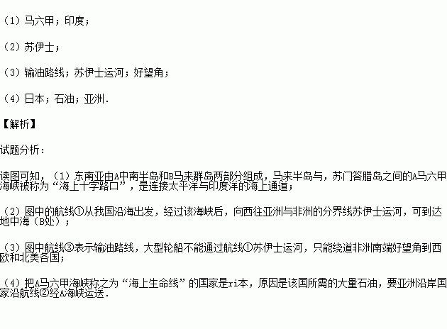 £¨4£©°ÑAº£Ï¿³ÆÖ®Îª¡°º£ÉÏÉúÃüÏß¡±µÄ¹ú¼ÒÊÇ £¬ÔÒòÊǸùúËùÐèµÄ´óÁ¿ £¨¿ó²ú£©Òª´Ó ÑØ°¶¹ú¼ÒÑØº½ÏߢھAº£Ï¿ÔËËÍ£®