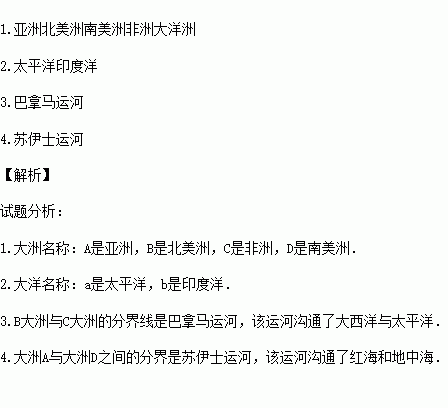 1.写出大洲名称A洲B洲C洲D洲E洲。