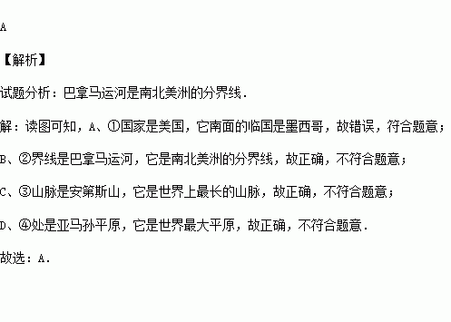 D.④处是亚马孙平原,它是世界最大平原