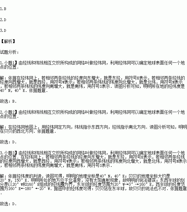 2.Ã÷Ã÷ÔÚ±´±´µÄʲô·½Ïò£¨ £©