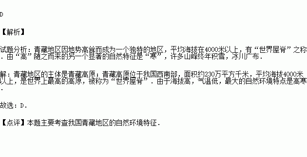 A.青藏地区﹣﹣高寒