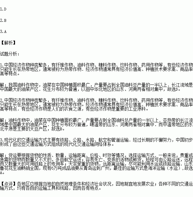 1.山东鲁花集团有限公司花生油年生产能力80万吨,为中国花生油第一品牌.根据图文材料可以判断该公司生产花生油的主要原料来自( )