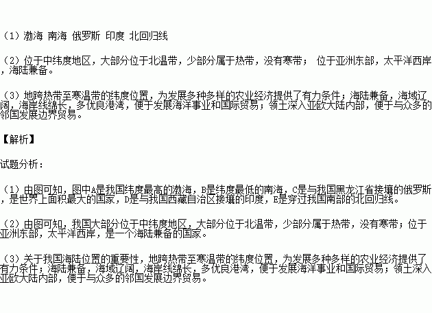 (3)请举例说明我国地理位置的优越性。(至少两条)