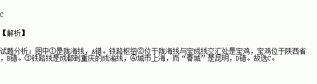 C.③铁路线是成渝线 D.④城市四季温暖如春,号称“春城”