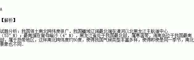 我国海南岛终年如夏,降水多,是一个没有冬天的海岛;而黑龙江省北部冬季漫长多冰雪,这种不同主要取决于