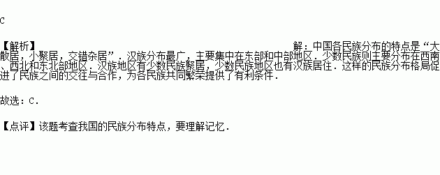B.少数民族的分布相对分散