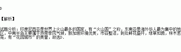 C.中南半岛——热带雨林气候 D.新加坡——有“花园城市”之称