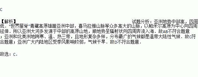 关于亚洲自然环境特征说法正确的是