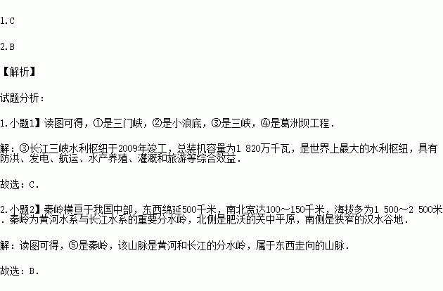 1.我国已建成世界最大的水电站位于 图中的( )