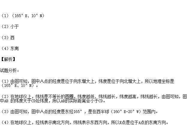 (2)AB的实际距离 (大于、等于、小于)CD的实际距离.