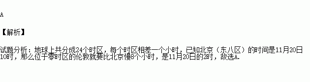 已知北京(东八区)的时间为11月20日10时,伦敦(零时区)是( )
