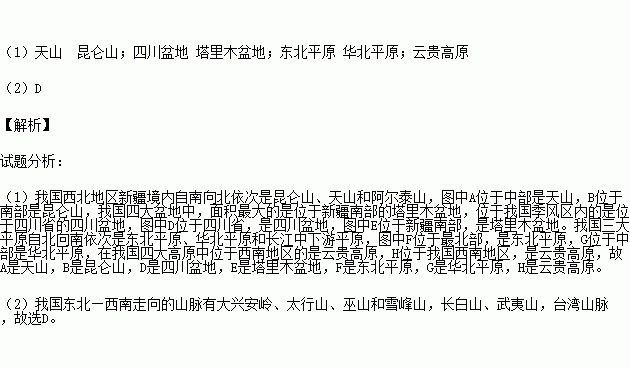 (1)填出山脉名称:① ② ③ ④ ⑤ ⑥ ⑦
