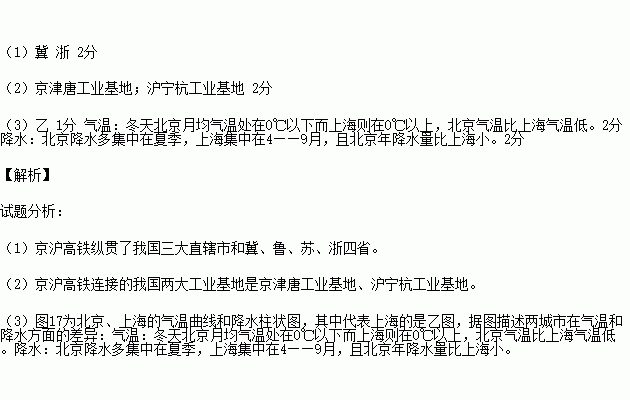(2)京沪高铁连接的我国两大工业基地是 、 。