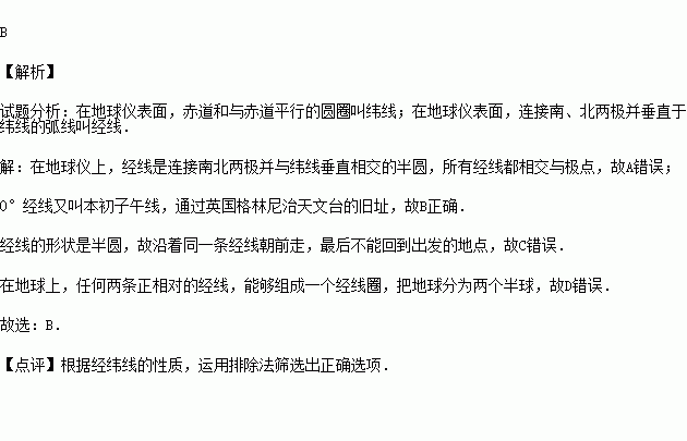 D.每条经线的长度都相等,任何一条经线都能把地球分为两个半球
