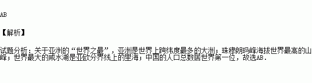 A.位置——亚洲是跨纬度最多的大洲 B.地形——珠穆朗玛峰海拔世界最高