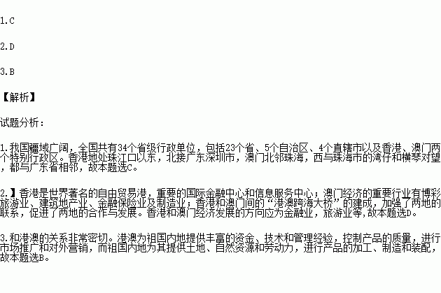 1.香港和澳门与我国哪个省相邻( )
