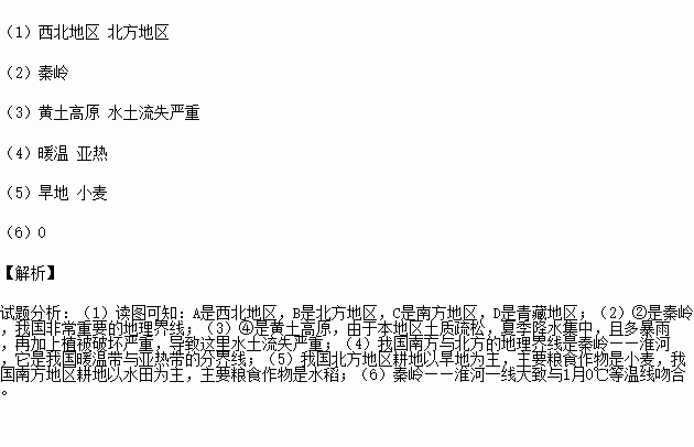 (4)BC两地理区域的分界线是我国 (温度)带与 (温度)带的分界线.