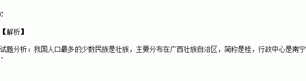 “五十六个星座,五十六枝花,五十六族兄弟姐妹是一家……”这首歌唱出了我国各民族的心声。我国人口最多的少数民族主要分布省区的简称是
