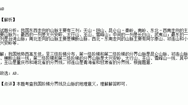 C.大兴安岭→太行山→巫山→线 D.伊利→泉州→线