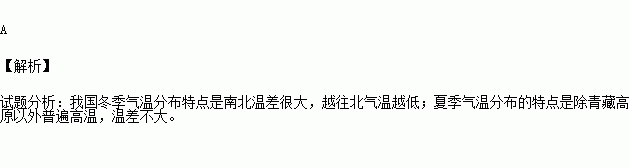 D.冬季全国普遍高温,南北气温相差不大;夏季南北气温相差很大