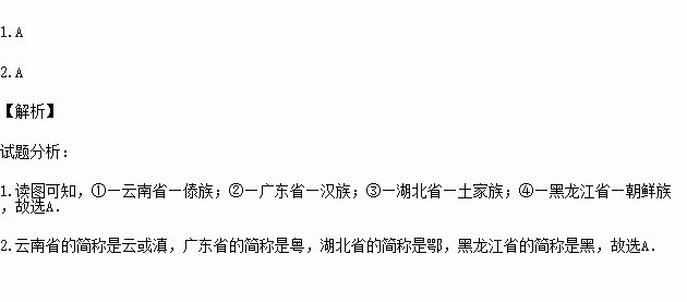 1.下列四个省区的名称、少数民族,组合正确的是