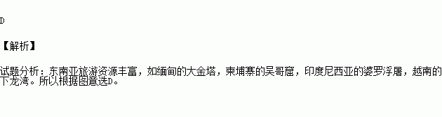 东南亚旅游资源丰富,下列国家与旅游景点组合不正确的是 ( )