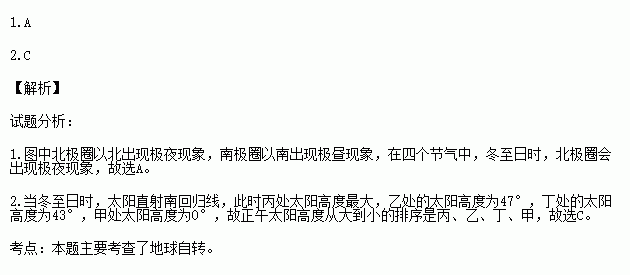 2.图中四点正午太阳高度按照从大到小的顺序排列,正确的是