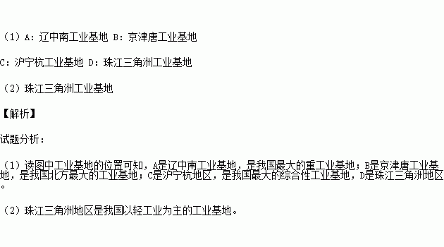 (2)这些工业基地中,以轻工业为主的是 ______________________。